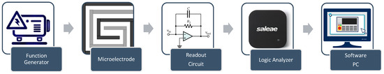 Figure 4. A block diagram of the impedance spectroscopy system. - Data acquisition: The signal from the readout circuit is acquired using Saleae Logic 8 with appropriate features up to a 5 MHz frequency. Table 3 shows the specifications for the Saleae Logic Pro 8 data acquisition [34].