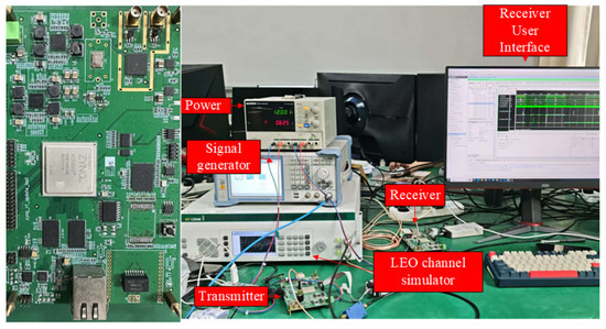 - To conduct hardware validation tests, a testbed has been set up in the laboratory, including power supplies, signal generators, LEO channel simulators, etc. Opportunities for conducting field tests will be sought in the future.The testbed for hardware validation tests is shown in Figure 13.