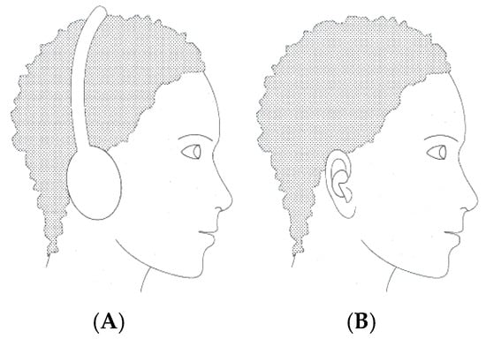 (A) Periauricular system for EEG recording. (B) Intra-auricular device for EEG recording.