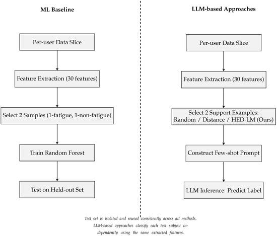 Fatigue detection was chosen as a representative case study due to its practical importance and inherent complexity. Accurately detecting fatigue has substantial implications for health, safety, and productivity across numerous healthcare and occupational safety domains. Moreover, accelerometer-based fatigue detection is characterized by subtle and overlapping sensor patterns, which make example selection critically important [11,15]. The subtle differences between fatigue and non-fatigue states, coupled with temporal dynamics and sensor noise, provide an ideal scenario to rigorously test and validate the effectiveness of example selection optimization methods like HED-LM.