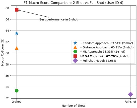 - RQ3: How does HED-LM compare to conventional example selection approaches such as random sampling and distance-based filtering in few-shot prompting?Contribution 3: We show that HED-LM improves few-shot prompting performance over conventional methods. Compared to random and distance-based selection, HED-LM achieves relative macro F1-score improvements of 16.6% and 2.3%, respectively, demonstrating the advantage of combining numerical similarity and contextual relevance in selecting examples.