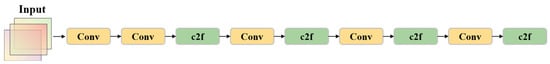 In the implementation, the contextual branch performs hierarchical feature processing on the input tensor Xin. Initially, a 5 × 5 depthwise convolution extracts foundational features. The resulting feature map is then strategically partitioned into three channel-wise segments with proportions of 1/8, 3/8, and 1/2. Each segment undergoes distinct depthwise convolution transformations: the first segment preserves core representational information, the second employs a 5 × 5 convolution with a dilation rate of 2, while the third utilizes a 7 × 7 convolution with a dilation rate of 3. Subsequently, these feature representations are reassembled along the channel dimension and refined through the aggregation branch’s 1 × 1 convolution, ultimately generating the module’s output features as described in Equation (4). This sophisticated multi-scale feature extraction and adaptive aggregation mechanism substantially augments the model’s capacity to discern intricate spatial–contextual representations.