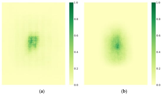 Given that model performance is directly influenced by its receptive field size and feature extraction capability, we employ gradient visualization techniques to conduct an in-depth analysis and comparison of the effective receptive field of the optimized model []. In this study, we randomly select 50 images from the test set and standardize their resolution to 640 × 640 pixels. Next, we perform normalization processing on the contributions of image pixel features, ensuring that all contribution values fall within a standardized range of 0 to 1. Subsequently, we measure the effective pixel region ratio corresponding to each pixel during feature mapping. Specifically, Table 6 presents a detailed comparative analysis of the feature-effective pixel contribution rates between RT-DETR-r18 and RT-DETR-EVD under predefined thresholds of pixel contribution rates set at t = 20%, 30%, 50%, and 99%.