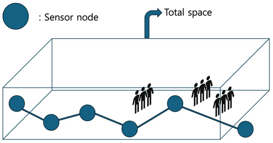 The total-space-coverage algorithm, called TSC, aims to cover the entire area while considering humans as obstacles. This strategy involves deploying sensors across the entire area to ensure comprehensive surveillance coverage. The main goal of the total-space-coverage algorithm is to maximize the number of deep learning-assisted surveillance barriers such that the obstacles in the area are considered. Figure 4 shows the strategy of the total-space-coverage scheme. The pseudo-code for TSC is presented in Algorithm 1, along with detailed descriptions.
