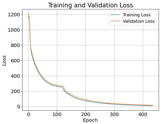 The training phase concluded with a loss of 11.0841, reflecting the model’s efficiency in learning from the training dataset, which included various features such as the area size, weather conditions, sensing radius, number of nodes, and device lifetime. In parallel, the validation loss was recorded at 17.7. This discrepancy between the training and validation loss suggests potential issues with generalization, which is a focal point for further investigation and optimization. Figure 6 depicts the comparison between the training loss and validation loss.