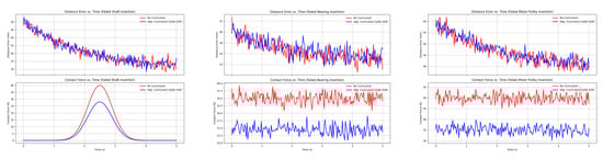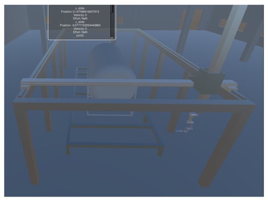 All simulations and visualizations in this study were conducted using Unity 3D (Unity Technologies, San Francisco, CA, USA; version 2022.3 LTS). The physical robot used was the UR3e (Universal Robots A/S, Odense, Denmark), integrated with an MPU-9250 IMU (TDK InvenSense Inc., San Jose, CA, USA), an ATI Mini45 force/torque sensor (ATI Industrial Automation, Apex, NC, USA), and an Intel RealSense D435i RGB-D camera (Intel Corporation, Santa Clara, CA, USA). Data processing and algorithm implementation were performed using MATLAB R2023a (MathWorks Inc., Natick, MA, USA) and Python 3.10, running on Windows 10 Pro 64-bit. Communication between components was handled via TCP, UDP, and HTTP protocols over Ethernet and USB 3.0 interfaces.