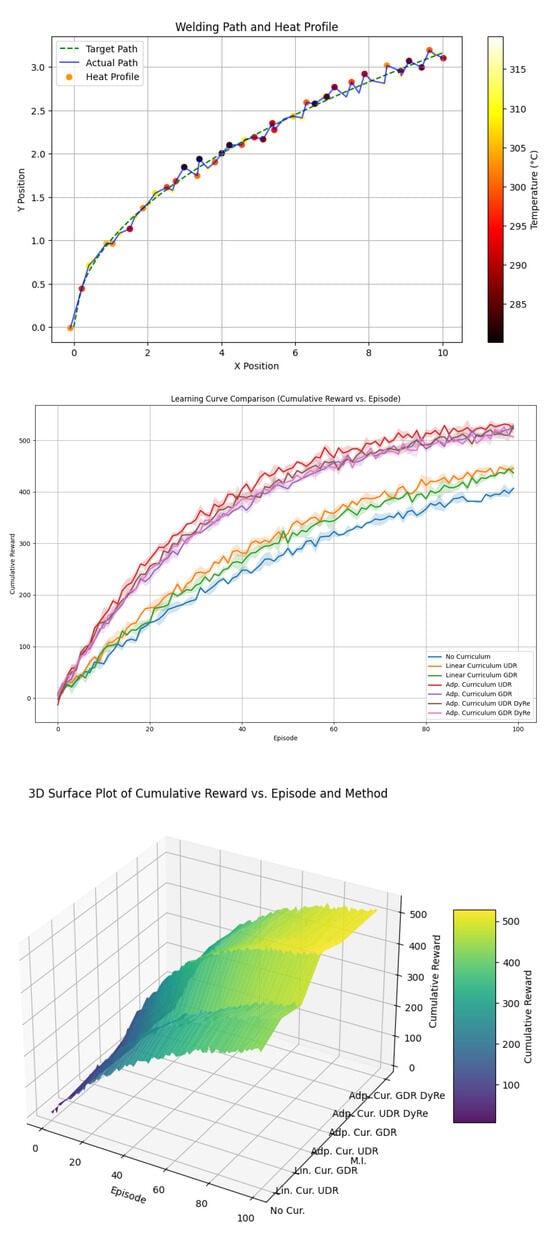 Welding robots are essential in modern manufacturing, providing high precision and efficiency in welding processes. To optimize their performance and minimize errors, accurate simulation of their behavior is crucial. This paper presents a novel approach to enhance the simulation of welding robots using the Virtual, Augmented, and Mixed Reality (VAM) simulation platform. The VAM platform offers a dynamic and versatile environment that enables a detailed and realistic representation of welding robot actions, interactions, and responses. By integrating VAM with existing simulation techniques, we aim to improve the fidelity and realism of the simulations. Furthermore, to accelerate the learning and optimization of the welding robot’s behavior, we incorporate deep reinforcement learning (DRL) techniques. Specifically, DRL is utilized for task offloading and trajectory planning, allowing the robot to make intelligent decisions in real-time. This integration not only enhances the simulation’s accuracy but also improves the robot’s operational efficiency in smart manufacturing environments. Our approach demonstrates the potential of combining advanced simulation platforms with machine learning to advance the capabilities of industrial robots. In addition, experimental results show that ANFIS achieves higher accuracy and faster convergence compared to traditional control strategies such as PID and FLC.