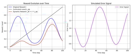 In order to gradually increase the challenge during training, we incorporate a dynamic reward scaling factor that is linked to the curriculum’s current difficulty level: