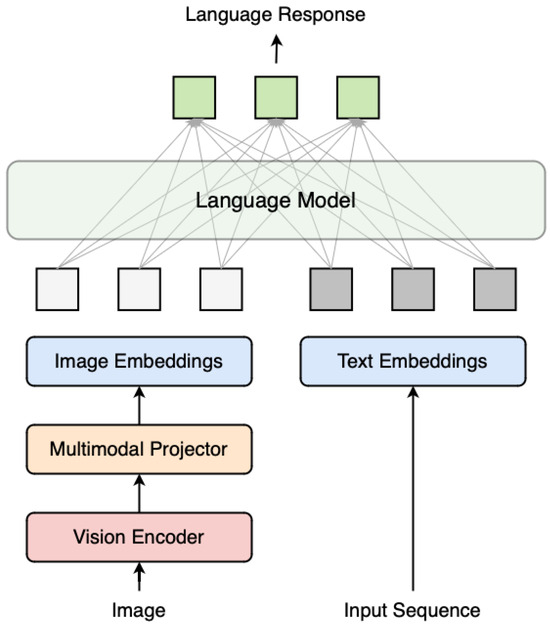 This project utilized the Large Language and Vision Assistant (LLaVA) as its core LLM model. LLaVA is a multimodal language model developed by Liu et al. [10] that is based on a combination of the Large Language Model Meta AI (LLaMA) open-source LLM [31] and visual encoders derived from technology such as Contrastive Language–Image Pre-training (CLIP) [32]. LLaVA represents an advanced multimodal LLM that is capable of processing both text and image inputs simultaneously.