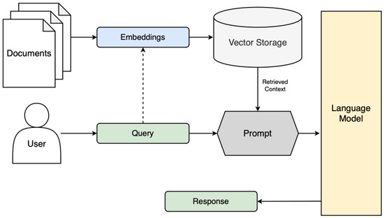 The progression of Natural Language Processing (NLP), catalyzed by concurrent advancements in artificial intelligence research and technology, has led to its application in a number of key fields [12]. Notably, Pajila et al. explain that NLP is responsible for underpinning machine translation services, enhancing search engine functionality, conducting sentiment analysis to gauge public opinion, and powering virtual assistants and chatbots. Such a varied spread of contemporary applications demonstrates the pivotal modern role of the technology in facilitating advanced human–computer interactions. Central to the advancements in the area are Large Language Models (LLMs), a type of deep learning model that extends the capabilities of NLP through comprehensive pre-training on vast amounts of textual data [13]. LLMs, such as OpenAI’s GPT series, utilize transformer architectures characterized by mechanisms such as self-attention to capture the nuances of human language, allowing for the processing and generation of text that is both coherent and contextually relevant. Incidentally, the training of these models is both data and resource intensive and involves the processing of extensive, diverse collections of language examples to provide the model with the required broad understanding of language and world knowledge. Thus, the development of LLMs has been driven by current advancements in computational power as well as the increasing availability of large-scale datasets [14]. Such extensive training allows the model to perform tasks such as summarization and question answering with proficiency. The current applications of LLMs are vast, including analyzing patient data in healthcare scenarios, predicting financial market trends, and generating content in a wide variety of creative sectors [15]. The inherent adaptability of LLMs to perform disparate tasks without specific retraining highlights the transformative impact of the technology on how machines can process human language. However, a prominent issue is the phenomenon of model hallucination, where the generated response appears true or plausible but is factually incorrect or incoherent. This is thought to arise from a model’s tendency to produce outputs based on learned patterns without grounding in factual data, which can lead to myriad problems with its application or validity, especially in high-risk scenarios such as healthcare diagnosis assistance [16]. Addressing this is pivotal in continuing the development and application of LLMs and has traditionally involved the application of fine-tuning, a process where the model is further trained on a smaller, domain-specific ‘expert information’ dataset to improve its knowledge, thus adjusting the model’s parameters and improving its relevance and accuracy [17]. While effective, fine-tuning is resource intensive and may not fully address problems like bias if the model does not have a way to access the expert information in real time when prompted.