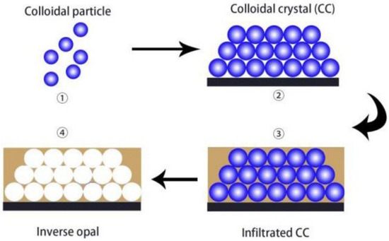 - Armstrong, E.; O’Dwyer, C. Artificial opal photonic crystals and inverse opal structures–fundamentals and applications from optics to energy storage. J. Mater. Chem. C 2015, 3, 6109–6143. [Google Scholar] [CrossRef]