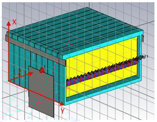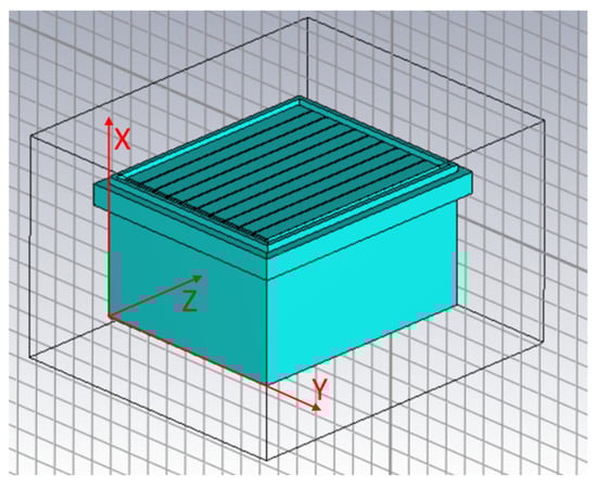 Most approaches to RFID system design are based on the simple radar equation assuming targets located in the free space and in the far field of the transmitter/receiver antennas. The complexity of real scenarios has led to the proposal of models based on transfer impedance [14], the impedance matrix [15], or S parameters [16], which consider the coupling between reader and tag antennas without any limiting assumptions on the propagation environment. The authors of [14] focused on two scenarios—free space and two-ray (direct and reflected) scenarios—for practical antenna tag design. The authors of [15] evaluated the RSSI through post-processing of the impedance matrix obtained with simulations in CST Studio (Dassault Systèmes, Vélizy-Villacoublay, France) to analyze the propagation in a drawer scenario for RFID tag classification in smart storage systems. Also, the authors of [16] used the post-processing of the S-parameters obtained from simulations in CST Studio to analyze propagation in a beehive’s honeycomb frame for the RFID of a queen bee. Our analysis exploits the fact that the most restrictive link is the downlink (reader to tag) [17].
