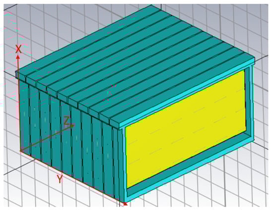 Once all structural materials are characterized, they can be used to model a full beehive in CST Studio. The resulting model has the same physical size as the beehive, as well as the same electrical properties. Different materials were employed to construct the model, as detailed in Table 1.