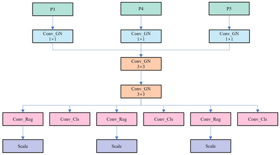 This structure enhances model performance and efficiency by amalgamating shared and independent convolutional layers, along with utilizing the distributed focus loss (DFL) module. The crux of its design lies in integrating shared convolutional layers, composed of two 3 × 3 convolutional layers for extracting general feature information, and independent convolutional layers, housing multiple 1 × 1 convolutional layers for regression and classification output. GroupNorm, proven effective in enhancing detection head performance, replaces the normalization layer BN in Conv to counteract feature extraction capability weakening in lightweight scenarios [44]. This design facilitates shared common feature extraction among multiple detection layers, thereby curtailing redundant calculations, lowering computational overhead, and preserving high detection accuracy. Introducing a distributed focus loss (DFL) module further enhances bounding box regression accuracy, facilitating more precise object localization in practical applications.