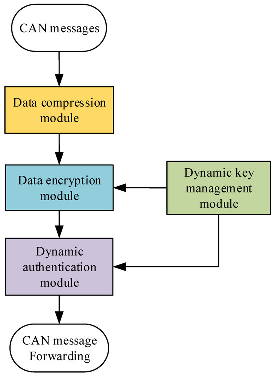 Since the maximum data-frame length of the CAN bus is 8 bytes, the authentication data must also adhere to this limit. To improve the efficiency of the authentication process and meet real-time requirements, we have designed a dynamic identity authentication mechanism that adapts to the CAN bus data transmission rate.