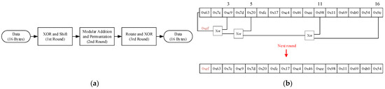 Dynamic Key Generation: Following predefined security policies, the system selects 4–6 specific bytes (including the least significant byte) to participate in subsequent XOR operations. The 16-byte key is shifted right by one unit as a whole, with the least significant unit being discarded. The pre-selected bytes are then subjected to an XOR operation one by one, and the result is filled into the most significant unit. Each shift generates a new 16-byte key, ultimately forming a key group for dynamic updates, as shown in
