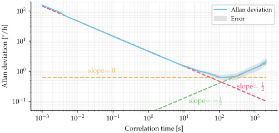 Finally, the Allan deviation was measured by inserting the IFOG-SMO in a chamber with the temperature controlled at 20°C, and the result is presented in Figure 14. From these data, the following results were obtained: bias drift of 0.93°, angle random walk (ARW) of , and rate random walk (RRW) of 4.23°.