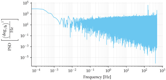 Power spectrum density of IFOG-SMO at rest in a temperature-controlled chamber at 20 °C.
