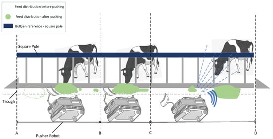 - Pavkin, D.Y.; Shilin, D.V.; Nikitin, E.A.; Kiryushin, I.A. Designing and Simulating the Control Process of a Feed Pusher Robot Used on a Dairy Farm. Appl. Sci. 2021, 11, 10665. [Google Scholar] [CrossRef]