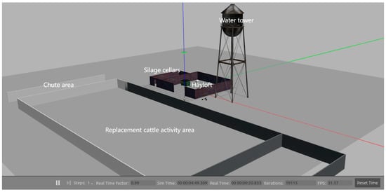 To better utilize the LiDAR data, this paper constructs a simulated ranch environment in Gazebo based on the floor plan of Hohhot Shengqingyuan Agricultural and Animal Husbandry Co., Ltd., in Inner Mongolia, China. The simulation primarily focuses on the silage cellar, hay barn, and the activity area of the reserve cattle, including their trough area. The study investigates the advantages and limitations of three laser mapping schemes, as illustrated in Figure 7.