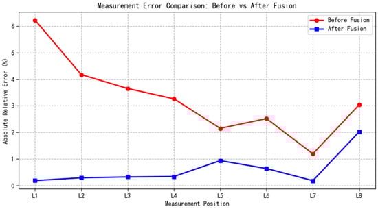 The results of the environment reconstruction dimensions for the eight specific locations, both before and after optimization, are presented in Table 2 and Table 3, respectively. Figure 18 illustrates a line graph comparing the relative error values.