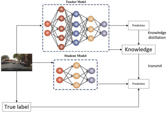 On this basis, the teacher model transfers its captured knowledge of data features and decision boundaries to the student model under its powerful learning ability and rich expressive capability. This knowledge transfer significantly enhances the student model’s ability to generalize to unseen data, enabling it to approximate the performance level of the teacher model while maintaining its lightweight advantage [].