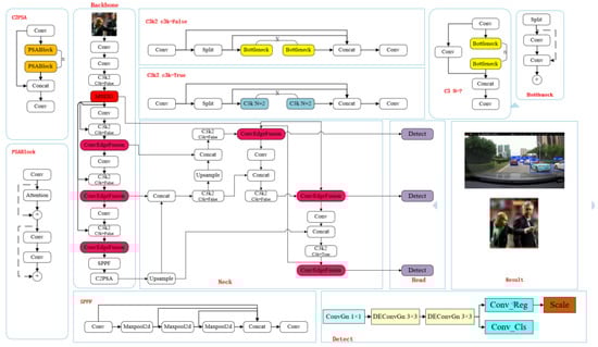 Finally, YOLOv11 moderately increases the depth and width of each version of the network model while maintaining high efficiency, and this structural expansion further enhances the feature extraction capability of the model to deal with more complex detection scenarios. The network structure of YOLOv11 is shown in Figure 1 below. Since the original YOLOv11 algorithm cannot satisfy the current detection in traffic scenarios due to the mutual occlusion of vehicles and the influence of light, YOLOv11 is used as a baseline model for improvement [].