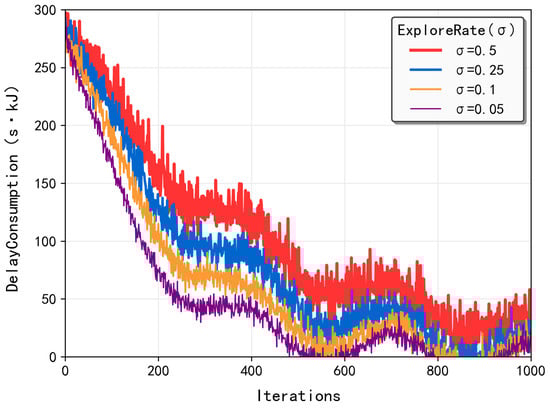 The convergence of the MATD3-TORA algorithm under varying exploration rates ().