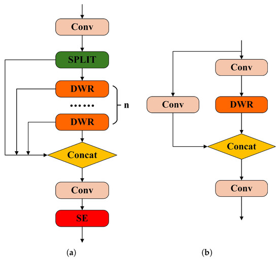 Figure 5 presents the configurations of the updated modules, with (a) detailing the C3K2DS architecture and (b) showcasing the C3K variant incorporating the DWR structure.