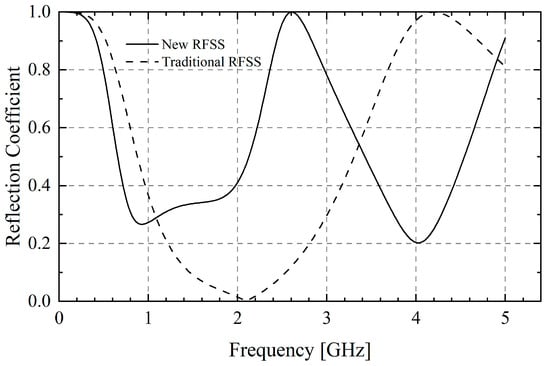 In previous works, single stopband RFSS is usually used to absorb the reflected wave of fmid. This is because the electromagnetic wave radiated downwards by the antenna at fmid will generate a phase difference of 180° with the upward wave, resulting in an equivalent short-circuit point. However, it has high orders at the integer times of fmid, which prevents the bandwidth from expanding to high frequency.