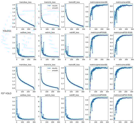 The training curves demonstrate that FD2-YOLO exhibits superior performance and higher training stability and convergence efficiency in comparison with YOLOv11. This validates the effectiveness of the proposed architectural enhancements.