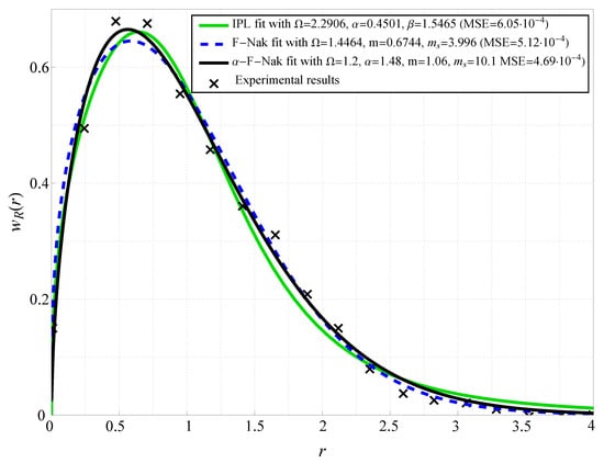 The fluctuating Nakagami-m fading distribution was initially proposed in [] as the ratio of two independent random variables: the Nakagami-distributed and power-transformed uniformly distributed one, with the channel coefficient envelope R given by