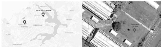 The developed prototype—abbreviated to PRT—was installed at UnB, in the Institute of Biology (IB), at 1030 m altitude and at the latitude and longitude coordinates (−15.767210, −47.864540). Approximately 7 km from it, A001 lies at (−15.791222, −47.925200) 1161 m elevation, in INMET. The distance is expected to cause a small climate divergence, as well as UnB being slightly warmer due to higher urbanization and lower altitude. See Figure 8.