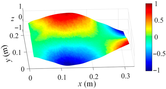 An illustration of captured displacement map via stereo-DIC (z axis indicates the normalized displacement without unit).