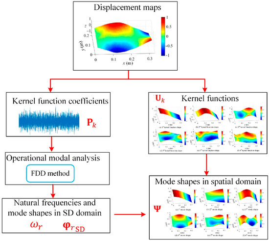 An operational modal analysis flowchart based on full-field displacement maps via adaptive kernel functions.