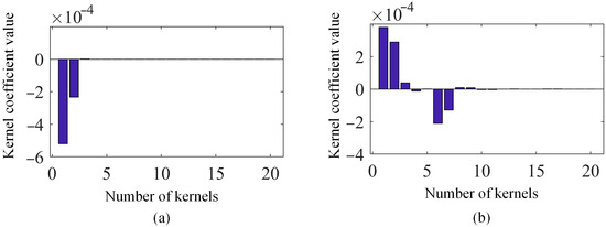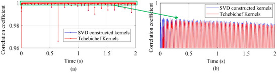 (a) Kernel coefficients of SVD method and (b) kernel coefficients of Chebyshev kernels based on the displacement map at 1.75 s.