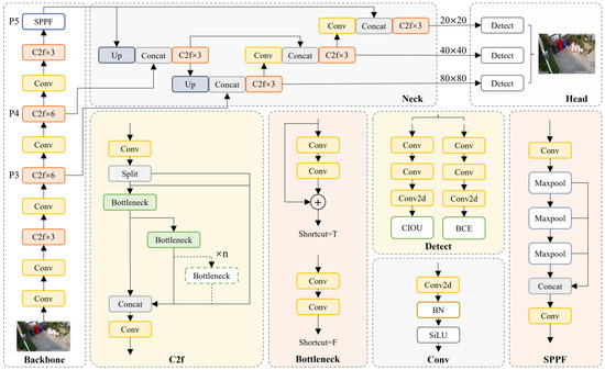 The standard YOLOv8 network comprises three detection heads. When processing an input image of size 640 × 640, the multi-stage downsampling in the Backbone and subsequent feature fusion in the Neck produce detection feature maps of 20 × 20, 40 × 40, and 80 × 80, which correspond to detecting objects larger than 32 × 32, 16 × 16, and 8 × 8 pixels, respectively. However, objects smaller than 8 × 8 pixels remain challenging to detect, resulting in missed detections.