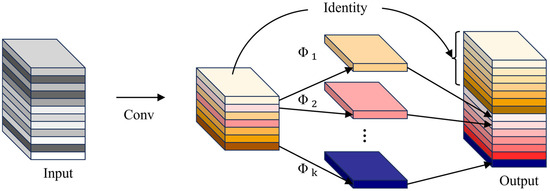 Feature extraction in deep neural networks often generates a substantial number of redundant feature maps, leading to high computational costs. Although these redundant features are essential for data representation, they impose significant computational overhead. Inspired by GhostNet [26], which demonstrated the effectiveness of GhostConv in reducing computational costs, this study adopts the GhostConv mechanism to enhance computational efficiency during feature space expansion. GhostConv generates additional feature maps at a reduced computational expense, thereby lowering memory consumption during intermediate feature mapping. The fundamental structure of GhostConv is shown in Figure 3.