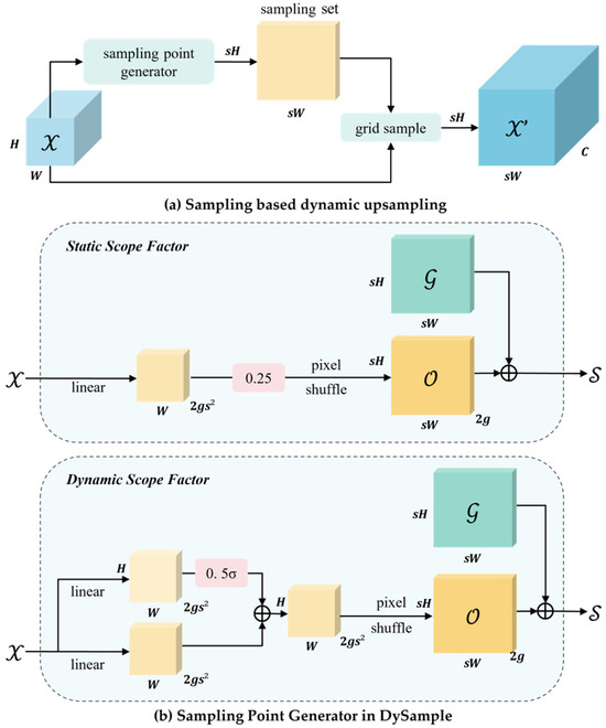 In the neck network, traditional nearest-neighbor upsampling was replaced with Dysample upsampling, generating higher-quality feature maps and improving the model’s ability to distinguish overlapping waste objects.