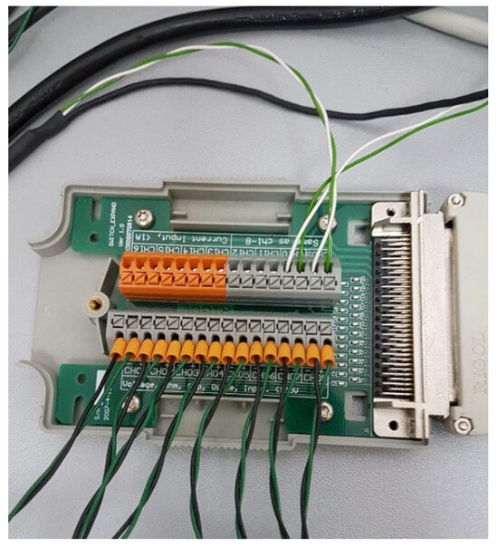 Measurement system setup consists of a Huxeflux thermal heat flux plate HFP01 [23] as the heat flux sensor. The total thermal resistance is kept small by using a ceramic–plastic composite body, and the sensor is suitable for long term use. The measurement range is −2000 to +2000 W/m2, with sensitivity of 60 × 10−6 V/(W/m2). The low output voltage of such sensors makes it difficult to measure small voltages in the range of microvolts; however, the chosen digital multimeter has resolution of 0.1 µV on the voltage range of 200 mV and acceptable accuracy, so it was not necessary to consider nanovoltmeter or similar instruments. The advantage of this instrument is that it has a 16-channel multiplexer module (Figure 3), which can be adapted to measure both voltages and resistances.