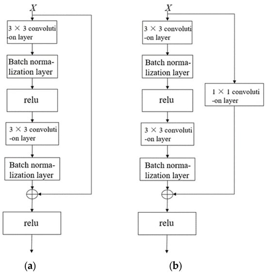 Standard residual block and residual block with downsampling layer. (a) Standard residual block. (b) Residual block with downsampling layer.