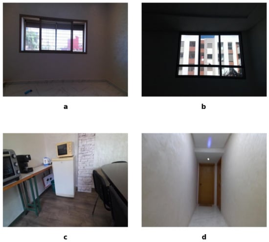 Residential apartments shown in Figure 1: Featuring a mix of open and confined spaces, with varied wall textures, furniture arrangements, and natural lighting.