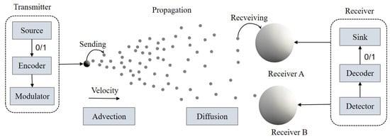- Zhang, P.; Lu, P.; Wang, X.; Liao, X. Modeling of Respiratory Virus Transmission Using Single-Input-Multiple-Output Molecular Communication Techniques. Electronics 2025, 14, 213. [Google Scholar] [CrossRef]