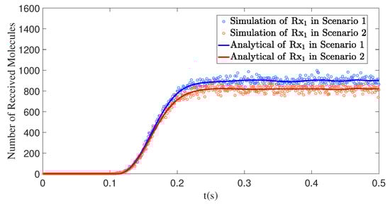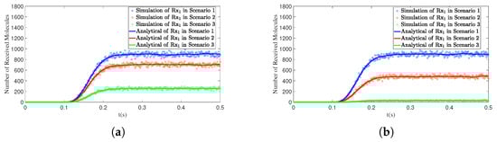 4.4. The Interfering Receiver Influences the Number of Molecules Received by the Primary Receiver