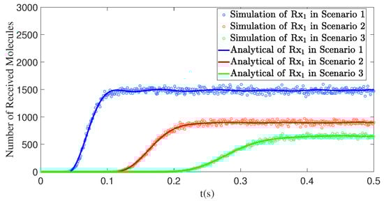4.3. The Distance Influences the Number of Molecules Received