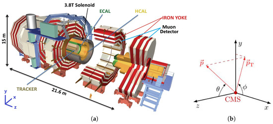 - Neutelings, I. CMS Coordinate System. 2023. Available online: https://tikz.net/axis3d_cms/ (accessed on 14 December 2023).