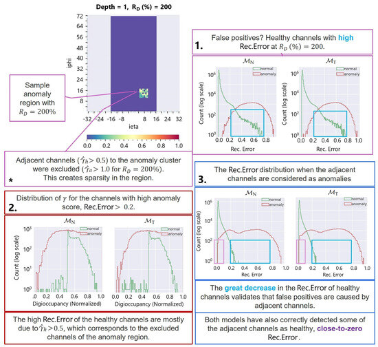 Our study discusses ST AD modeling for the Compact Muon Solenoid (CMS) experiment at the Large Hadron Collider (LHC) [29,30]. The CMS experiment, one of the two high-luminosity general-purpose detectors at the LHC, consists of a tracker to reconstruct particle paths accurately, two calorimeters—the electromagnetic (ECAL) and the hadronic (HCAL)—to detect electrons, photons, and hadrons, and a muon system [30,31]. The CMS experiment employs the Data Quality Monitoring (DQM) system to guarantee high-quality physics data through online monitoring that provides live feedback during data acquisition, as well as offline monitoring that certifies the data quality after offline processing [32]. The online DQM identifies emerging problems using reference distributions and predefined tests to detect known failure modes using summary histograms, such as digi-occupancy maps of the calorimeters [33,34]. A digi-occupancy map contains the histogram record of particle hits of the data-taking channels of the calorimeters at the digitization level. The CMS calorimeters may encounter problems during data taking, such as issues with the front-end particle sensing scintillators, digitization and communication systems, back-end hardware, and algorithms [6,35]. These problems are usually reflected in the digi-occupancy maps. The growing complexity of detectors and the variety of physics experiments make data-driven AD systems essential tools for CMS to automate the detection, identification, and localization of detector anomalies [6,36,37,38]. Recent efforts in DQM at CMS have presented DL for AD applications [6,32,35,38,39,40,41]. The synergy in AD has thus far achieved promising results on spatial 2D histogram maps of the DQM for the ECAL [35,38], the muon detectors [40], and ST 3D maps of the HCAL [6].