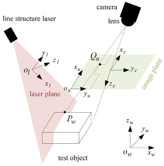 where represent the laser plane parameters. The mathematical model of line-structured light profile measurement can be obtained through combining Equations (1) and (2).