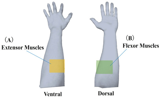 Classification of muscle deformation data. Forearm muscles were categorized into two groups: (A) extensor muscles, including ulnar and radial extensors, and (B) flexor muscles, including ulnar and radial flexors. Muscle deformation data from five trials were averaged and subjected to further analysis for each task.