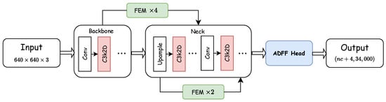 In summary, our approach addresses the limitations of previous traffic sign detection studies in low-resolution and complex background scenarios through the synergistic integration of three complementary modules. First, the C3k2-Dynamic module establishes a rich feature representation foundation while maintaining computational efficiency. These features are enhanced through the FEM, which leverages receptive field expansion to effectively distinguish traffic signs in complex visual environments. Subsequently, the ADFF detection head coordinates adaptive multi-scale feature fusion to preserve fine-grained spatial details. Figure 3 shows our component block diagram.